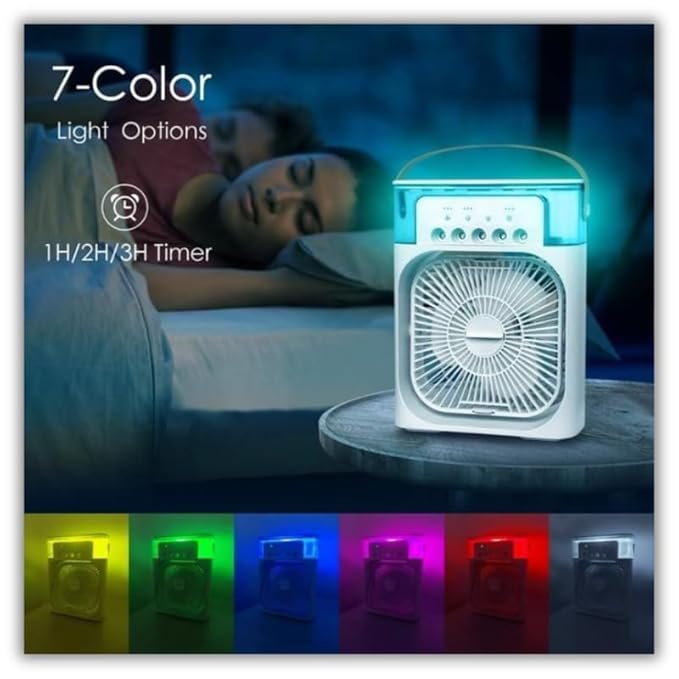 ✅ এটি একটি Mini Cooler স্প্রে ফ্যান, যার মাধ্যমে বাতাস আসে এবং মাঝখানে রয়েছে স্প্রে ফিচার – যা একসাথে ঠান্ডা হাওয়া ও হালকা পানির ফোঁটায় আপনাকে আরও সতেজ রাখে।